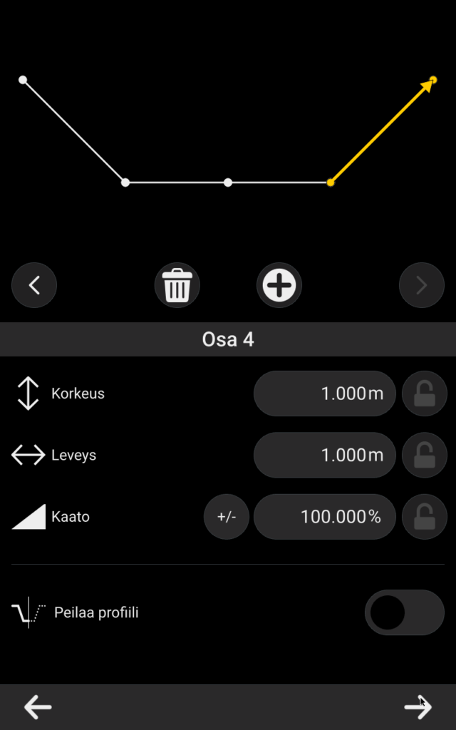 Näet järjestelmän profiilinäytöstä projektisi kaikki pinnat ja linjat samanaikaisesti, selkeästi ymmärrettävässä muodossa.